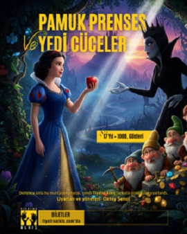Dünyaca ünlü bu muhteşem masal Tiyatro Alkış tarafından günümüze uyarlandı. Çocuğunuza defalarca okuduğunuz bu masalı yakından görmek ister misiniz? Güzeller güzeli Pamuk Prenses’i, Yedi Cüceler’i, Prens’i, Cadı’yı ve tabi ki Sihirli Ayna’yı.